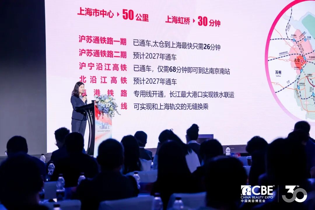 江苏美妆港湾团队近日参加2025中国(广州)CBE美妆产业发展大会,积极展示区域产业优势与投资环境。在大会主论坛上,太仓港经济技术开发区管委会副主任陆征主任发表题为《美妆新力量,赋能产业新动能》的主题演讲,深入解读太仓打造“江苏美妆港湾”的战略规划、政策支持及发展愿景,引发与会嘉宾高度关注。