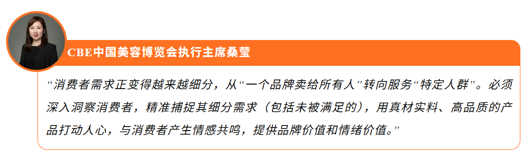 正如CBE中国美容博览会执行主席桑莹所言,消费者社交圈、爱好圈细分化,未来将诞生更多独立的“兴趣圈子”,所以接下来,美妆品牌比拼的是“精耕细作”的能力,将会诞生各种“细分王者”。