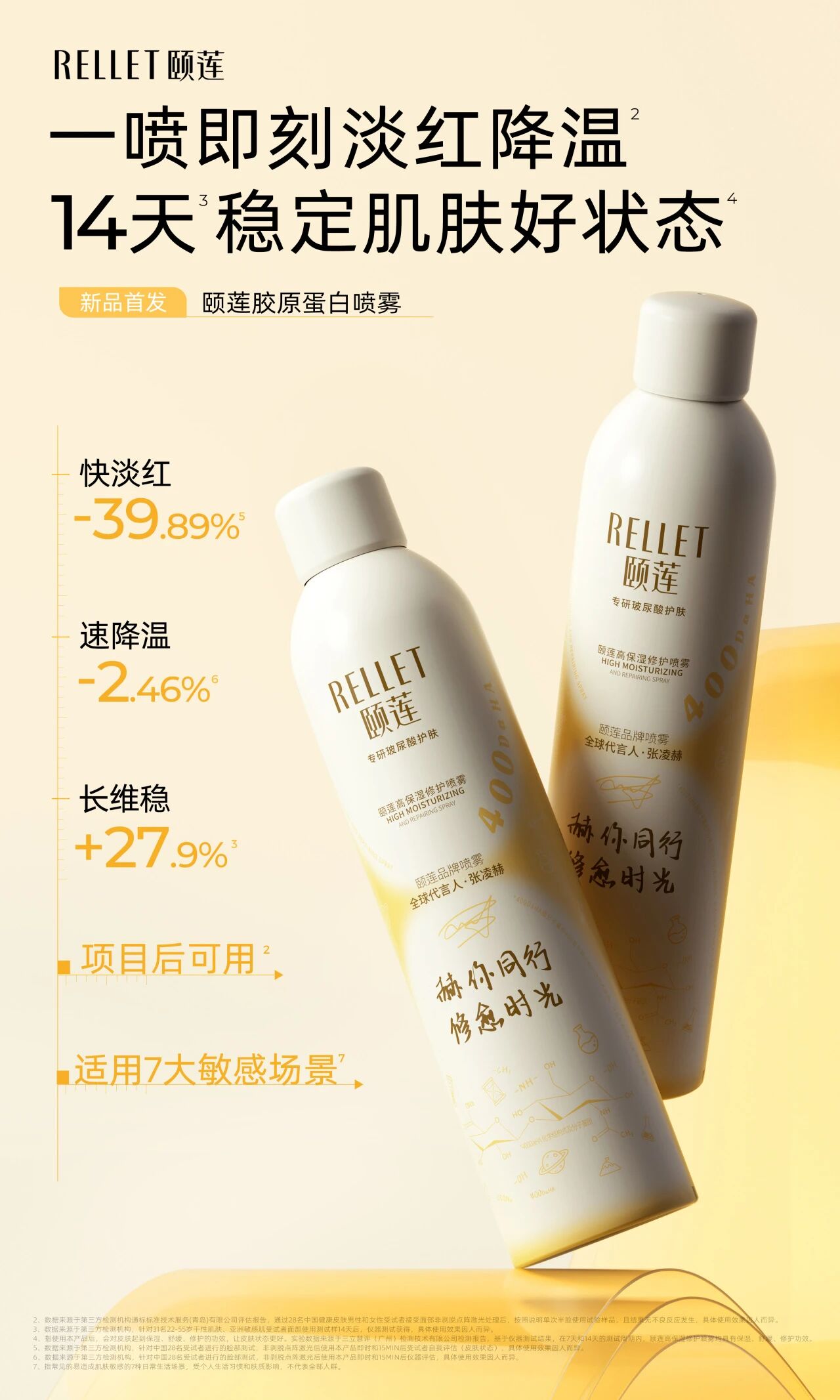此次续约之际,颐莲推出的新品——颐莲胶原蛋白喷雾,无疑是品牌二十余载科研沉淀的集大成者。400DaHA作为最小分子量HA,具备强大的自主渗透力,促进5大屏障蛋白基因表达。重组胶原蛋白作为类人源III型胶原蛋白,如同肌肤的“修复大师”,可激活屏障蛋白自生。更有90%高纯度冻干麦酵因协同4大专利HA,构建快修红、深修干、稳修愈的三段式自生修愈。瓶身由颐莲携手张凌赫共同打造,将拥有张凌赫个人风格的「赫你同行·修愈时光」的主题与科技成分元素巧妙融合,整体采用时光沙漏与流沙黄色设计,造型流转间仿佛肌肤在时光中修护新生,传递出产品陪伴消费者、提供不间断修护的美好寓意。